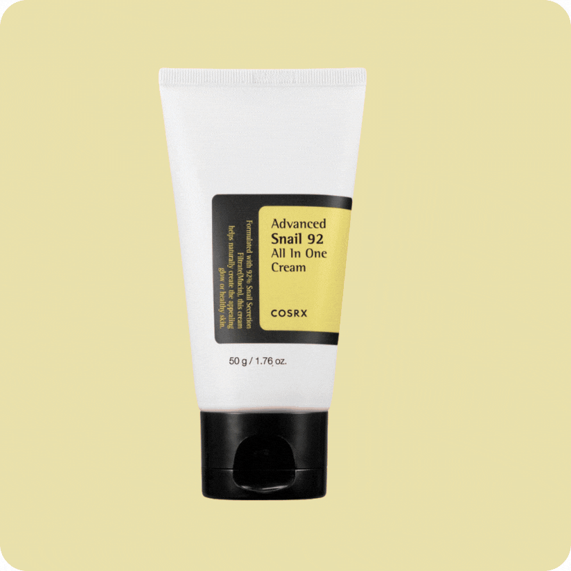 Cosrx Advanced Snail 92 All In One Cream mejora la textura de la piel, la calma y protege de las agresiones ambientales y repara los daños en pieles sensibles y con afecciones. Ayuda a la formación de colágeno y elastina, suaviza arrugas, marcas y manchas y reafirma. Si tienes piel grasa y acneica hidrata sin aportar grasa y cura las lesiones. Aporta vitaminas y nutrientes esenciales para la piel.